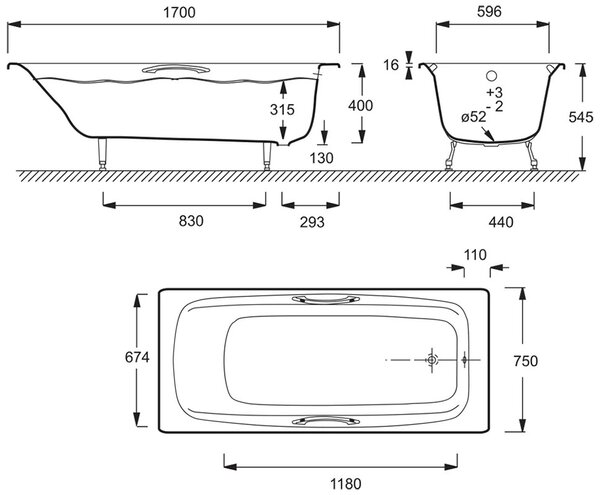 • Чугунная ванна Jacob Delafon Diapason, 170 x 75 см, ножки и слив-перелив в подарок, цвет белый, E2926-00